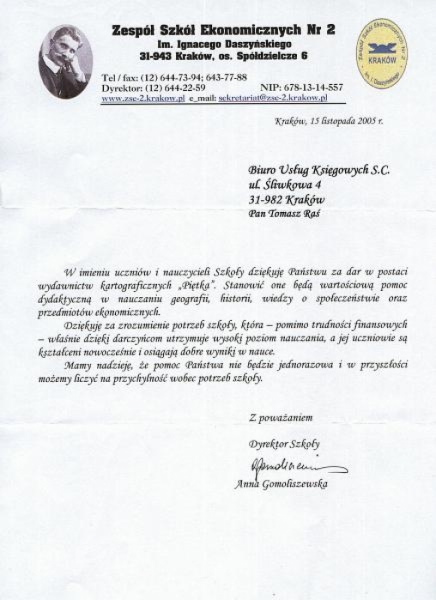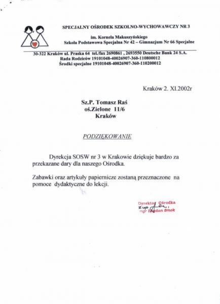 Podziękowanie za pomoc w zakupie materiałów edukacyjnych