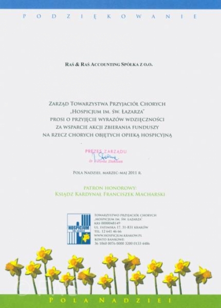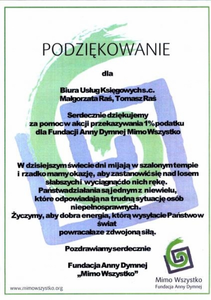 Podziękowanie za pomoc w pozyskiwaniu 1% podatku